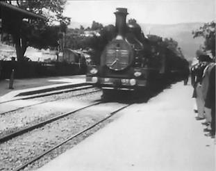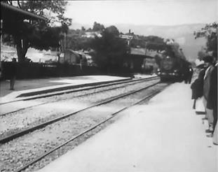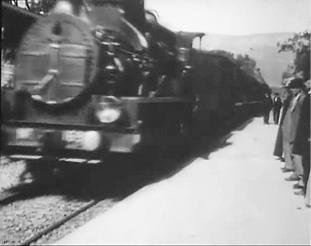 В первой сцене фильма мы видим общий план интерьера телеграфной станции на железнодорожном вокзале. Появляются бандиты, они связывают телеграфиста. В окне станции мы видим отправляющийся поезд – натурное изображение, впечатанное в павильонный интерьер. В следующей сцене (натурной) поезд останавливается около водокачки, что дает бандитам возможность сесть на него.