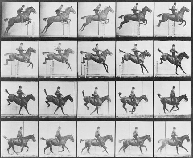 В 1877 г. фотограф Эдвард Майбридж по заказу Леланда Стэнфорда (бывшего губернатора штата Калифорния и будущего основателя Стэнфордского университета, а также влиятельного масона) закончил разработку специального стенда, с помощью которого можно было сфотографировать отдельные фазы движения скачущей лошади. Айвор Монтегю в своем знаменитом «Мире фильма» пишет: