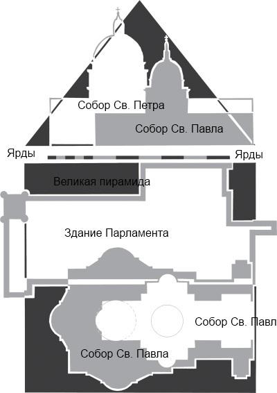 Сравнение размеров Великой пирамиды и собора Св. Павла в Лондоне