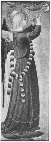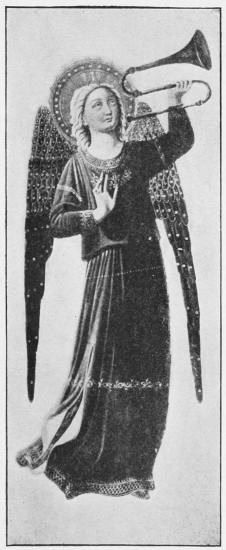 Yonder, with the face and attitude of one who prays, painting a lovely angel with flame upon her forehead, with stars upon her robe and with a golden trumpet in her hand, is a man whose fancy has outgrown the margin, the full page even, of the beloved parchment book, and so he fills a whole wall with his vision from Paradise. Little need is there to name this painter-monk. It is Fra Angelico, the "Angelical Painter," Il Beato, "The Blessed."