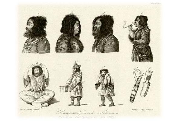Еще очень много интересных и таинственных объектов существует на территории России, но я хочу остановиться на одном из самых древних, загадочных и нетипичных народов Азии — айну. Тип лица этих людей похож на европейский: белокожие, широкоглазые и с удивительным пышным волосяным покровом в виде окладистой бороды, чем природа обделила азиатов. Пришедшие в эти края землепроходцы, русские казаки и ученые-картографы ошибочно принимали айнов за старообрядцев. В 1711 году писали о встрече с аборигенами айну атаман Данила Анцыферов и есаул Иван Козыревский: «Оставив байдарки сохнуть, пошли берегом на полдень и к вечеру увидели то ли дома, то ли чумы. Держа пищали наготове –, кто знает, что там за люди, — направились к ним. Навстречу высыпало человек полсотни, одетых в шкуры. Смотрели без испуга и были облика необыкновенного — волосатые, длиннобородые, но с белыми лицами и не раскосые, как якуты и камчадалы».