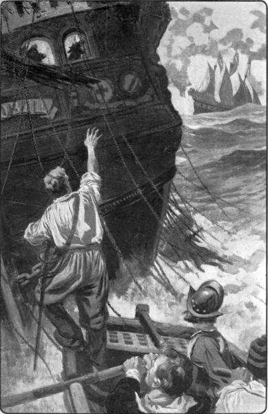 She came aboard late in the afternoon, and with Madame and the Sieur de la Notte went at once to the cabin. Soon Admiral Ribault came alongside in his pinnace and signaled the fleet to get under way. Amid the firing of cannon upon the shore we passed out of the river on the ebb of the tide and with a fair wind set the broad bows of the Trinity squarely into the red path of light that shimmered towards the sun, the color of blood. I shuddered a little; then laughed aloud at my womanish thought. Surely, my illness had made me weak indeed.