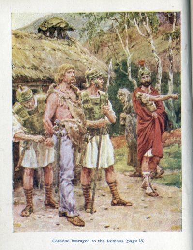 Among the British leaders the noblest was a chieftain of the name of Caradoc, or as the Romans called him, Caractacus. When some of the other chiefs, having been defeated many times, were forced to make peace with the invaders, Caradoc refused to yield. Fighting stubbornly, he contested every inch of southern Britain, but was slowly driven backwards to the mountains of Wales.