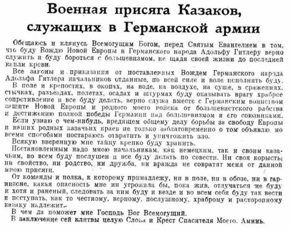 Далее, в этой же статье, говоря о сотрудничестве Краснова с немцами, ее авторы привели не совсем приятный для советских властей отрывок из недавней, на тот момент, истории: «Упоминая об этом, советская пресса забывает о… телеграмме, посланной гитлеровскому министру иностранных дел Иоахиму фон-Рибентропу 24 декабря 1939 года, в которой говорится следующее: «Благодарю Вас, Господин Министр, за Ваши поздравления. Дружба народов Германии и СССР, спаянная кровью, имеет все основания быть долгой и прочной. Сталин. (Правда. 25.12.39)».[217]