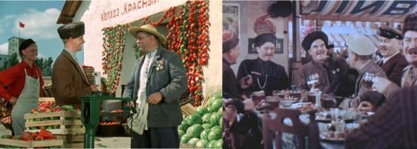 С ещё большим вниманием он относился к изображению своей империи в кинематографе, её можно было снимать исключительно прекрасной, с обязательным вкраплением советской символики и говорить лишь в положительном аспекте о невероятных свершениях, успехах, благополучии и процветании. Для этой цели не жалели средств, но результаты оказались поистине поразительными, поскольку эта абсолютная ложь, завёрнутая в красивую яркую обёртку, настолько въелась в сознание народа, что стала восприниматься, как истина. Все жители СССР, например, были прекрасно осведомлены о том, что такое колхозы и какие чудовищные репрессии обрушились как кубанское казачество. Правда заключалась в том, что Кубань оказалась одной из наиболее пострадавших от голода 1946—48 годов областей СССР. Тем не менее люди толпами с наслаждением ходили смотреть фильм «Кубанские казаки» о счастливой, сытой и радостной колхозной жизни, когда полные оптимизма увешанные орденами на добротной одежде казаки ходят по рынку, набитому дефицитными товарами и отборными продуктами, озабоченные лишь поисками счастливой любви.