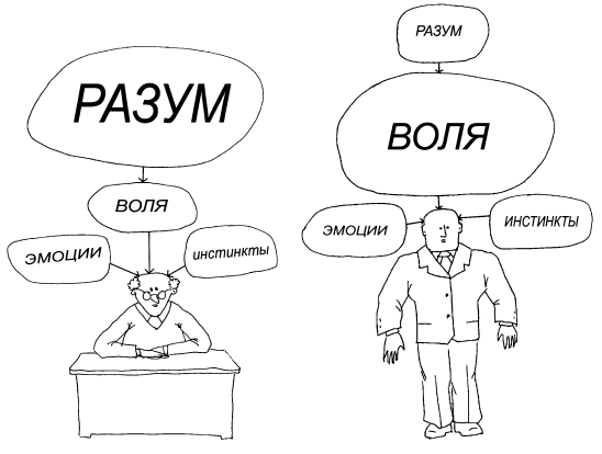 Далее мы будем рассматривать модель, в которой человек представлен исполнительным органом в виде физического тела, и несколькими органами управления, которые порой конкурируют между собой.