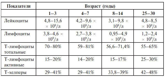 Показатели иммунограммы у здоровых людей различного возраста