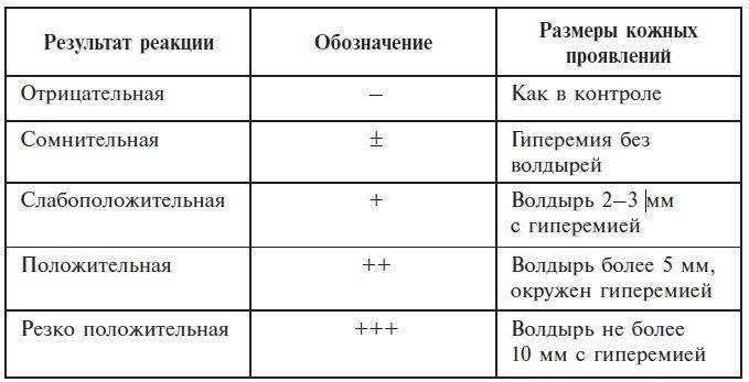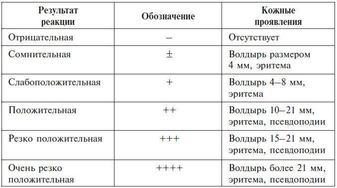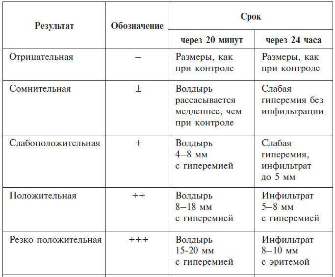 Реакция считается положительной, если на месте скарификации появляется волдырь более 5 мм в диаметре.