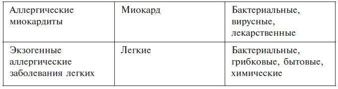 Среди болезней «комплексов» фигурируют экзогенный аллергический альвеолит, постстрептококковый гломерулонефрит, язвы тонкого кишечника при брюшном тифе, ревматоидный артрит и др.