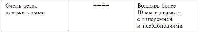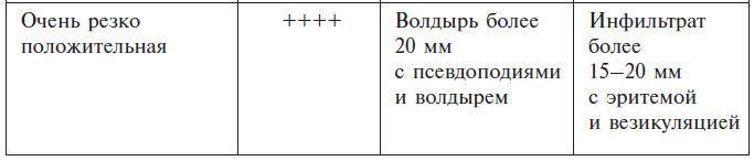 При положительной реакции замедленного типа возникают воспалительные явления в виде эритемы, отека, инфильтрации, папул, везикул, в зависимости от степени их выраженности.