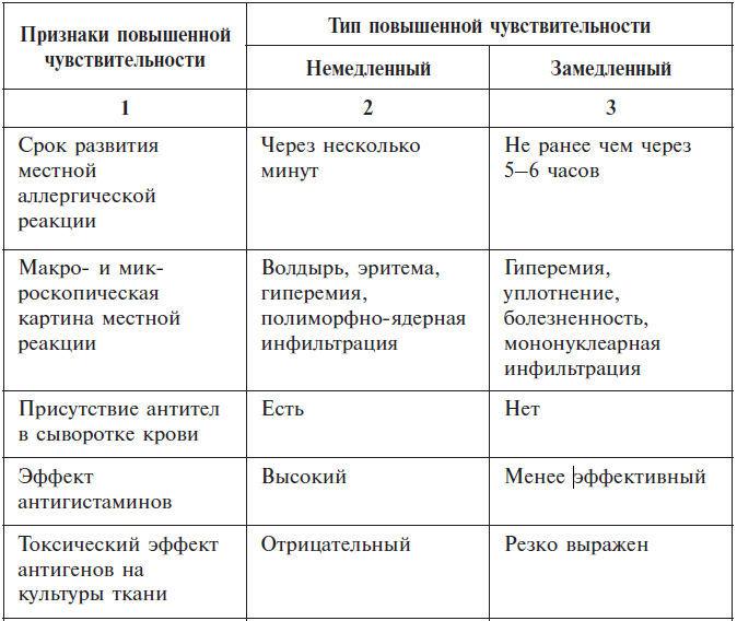 Характеристика немедленного и замедленного типов повышенной чувствительности (по Медуницину В. В.)