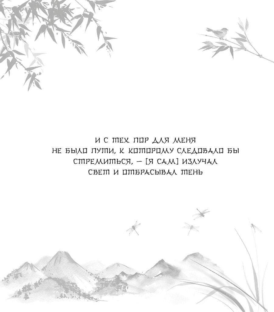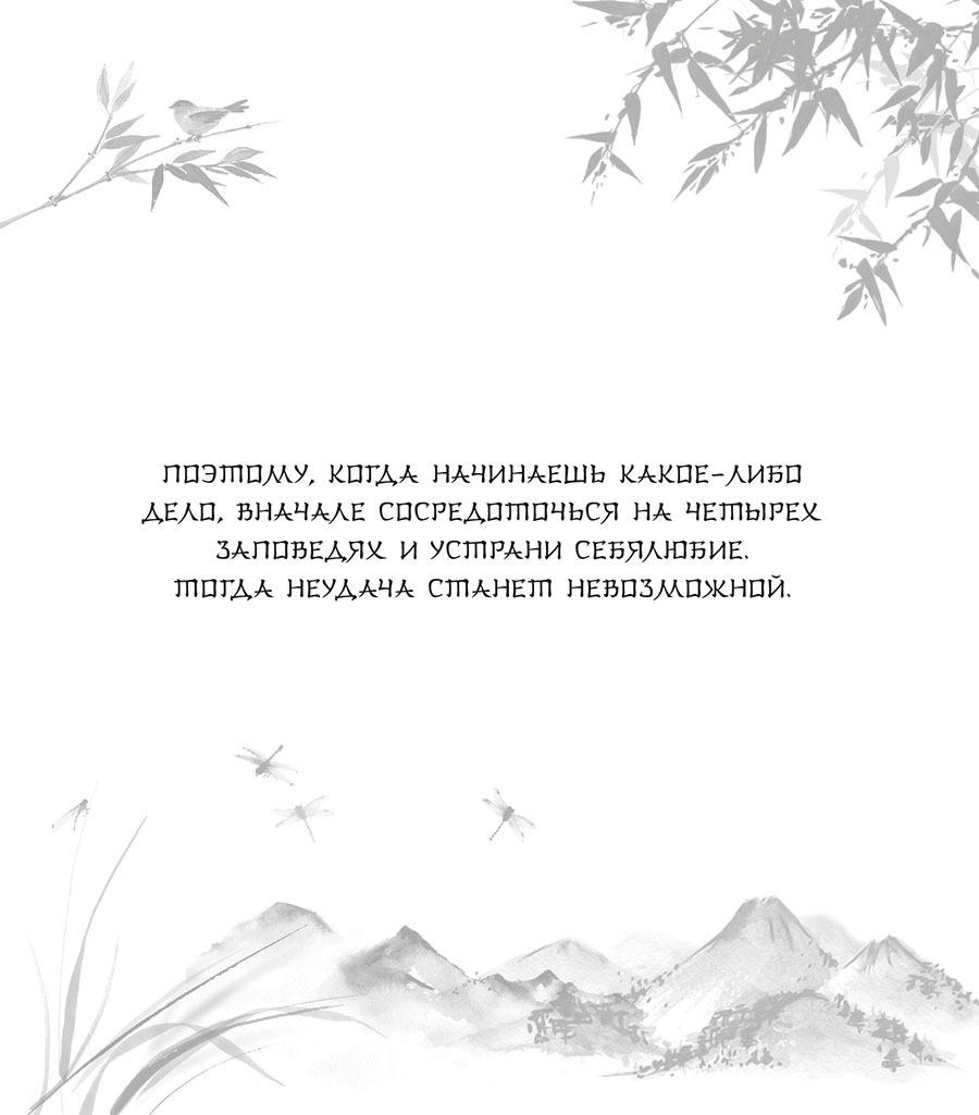 Когда мне перевалило за тридцать, я обернулся, посмотрел на прожитое и понял, что побеждал не оттого, что достиг высшего [мастерства] в хэйхо. Быть может, [это происходило] по той причине, что [я в достаточной мере] воспользовался способностями, [которые открываются на] этом Пути, или не отступал от Принципов Неба (Тэнри). А может, воины других школ не были достаточно [умелыми]? После этого я решил глубже постичь Принцип Пути (Дори), занимался днем и практиковал ночью, однако вышел на [истинный] Путь хэйхо лишь где-то в пятьдесят лет. И с тех пор для меня не было Пути, к которому следовало бы стремиться, – [я сам] излучал свет и отбрасывал тень. Положившись на основы хэйхо, я прилагал их ко всем искусствам и всем ремеслам и ни в каком деле не нуждался в учителях. Сейчас, составляя эту книгу, я не приводил слова ни из Закона Будды, ни из Пути Конфуция, не пользовался древними военными повествованиями и книгами по воинскому искусству; сделав заключение об одной школе, [я решил] полностью раскрыть сердце и, глядясь в зеркало Небесного Пути (Тэндо) и [богини] Кандзэон, в час Тигра ночью на десятый день десятого месяца я взялся за кисть и принялся писать.