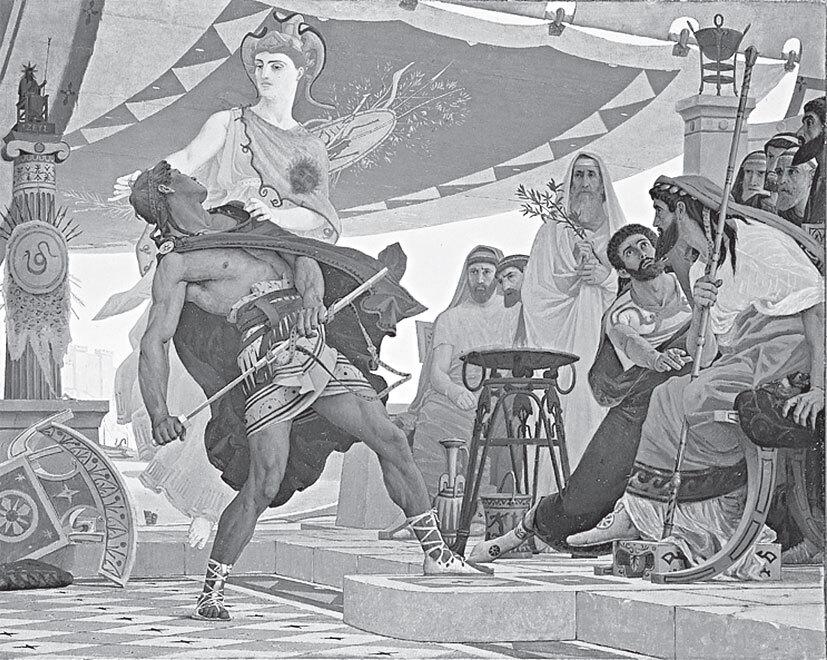 Хюбрис поочередно охватывает всех сражающихся. Он переходит от человека к человеку, как заразный вирус. Воины, ахейцы и троянцы, передают эту заразу друг другу. Они отключают мозг, сказали бы в наш электронный век. И тогда уже ничего не может их остановить. Захваченный пылом сражения Менелай предлагает нам свое собственное определение хюбриса:
