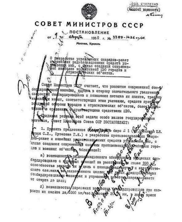 Послевоенный переход в авиации на использование реактивных двигателей привел к качественным изменениям в противостоянии средств воздушного нападения и средств противовоздушной обороны. Резкий рост скорости и максимальной высоты полета самолетов-разведчиков и бомбардировщиков свели практически к нулю эффективность зенитной артиллерии среднего калибра. Выпуск отечественной промышленностью зенитных артиллерийских комплексов в составе зенитных орудий 100- и 130-мм калибра и радиолокационных средств орудийной наводки не могли гарантировать надежной защиты охраняемых объектов. Первым объектом зенитно-ракетной обороны, требовавшим обеспечения надежной обороны, руководством страны была определена столица государства — Москва Постановление Совета Министров СССР М9 3389—1426 на разработку первой отечественной стационарной зенитно-ракетной системы для Войск ПВО страны, подписанное 9 августа 1950 года, было дополнено резолюцией И.В.Сталина: «Мы должны получить ракету для ПВО в течение года».