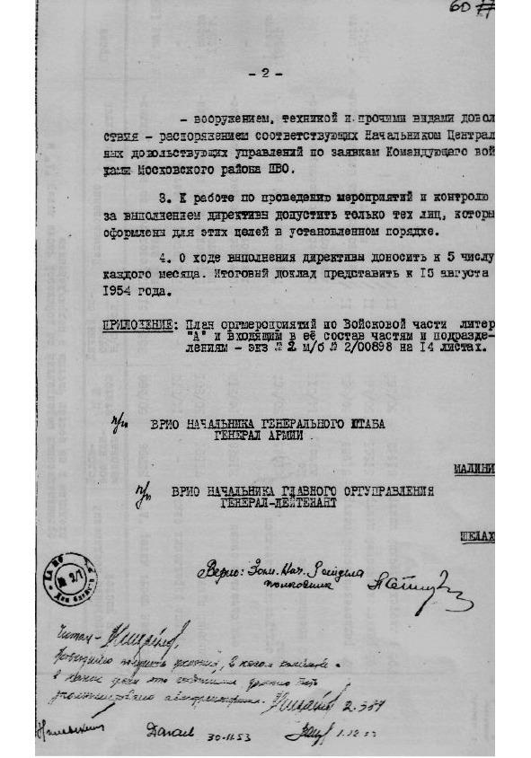 Первая страница постановления о создании ЗРС Беркут с визами И. В. Сталина и Л. П. Берии