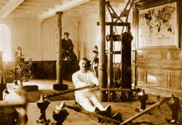Пассажиры первого класса «Титаника», который отбыл в первое и последнее плавание в апреле 1912 года, имели доступ в тренажерный зал. «Gymnasium» на корабле был оснащен гребными тренажерами, стационарными велосипедами, а так же аппаратами для имитирования езды на лошади и даже верблюде (рис. 5). Доступ в спортивный зал для женщин и мужчин был раздельным — с 9:00 до полудня и с 14:00 до 18:00 соответственно.