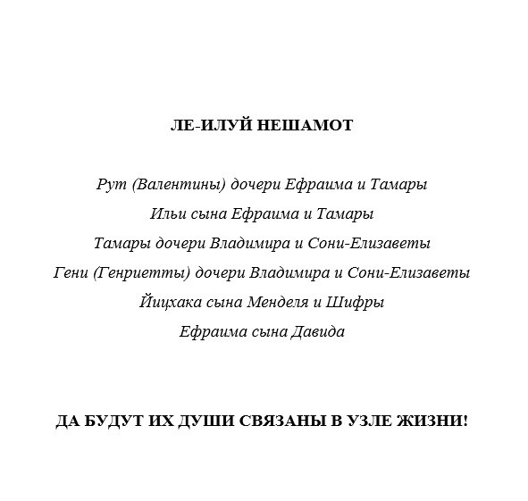 Благословение для всех участников нашего проекта издания книг АРИ на русском языке: Марк Моше бен Сара и Сара Песя бат Галина, Галина бат Елизавета и Марк бен Элла (Зигмунд), а также Мискаров Александр, Мискарова Анна, Мискарова Дарья – на большую удачу в жизни.