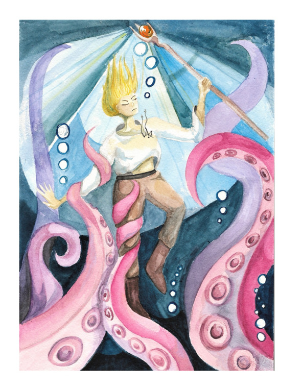 Трость задрожала и засветилась в воде ярким светом. Щупальца осьминога дрогнули и присоски отцепились от тела мальчика. Жан изо всех сил поплыл к маяку.