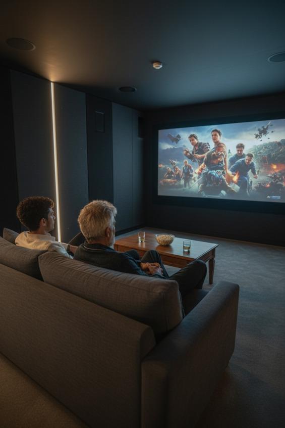 Но больше всего нас восхитил домашний кинотеатр. Огромный экран, профессиональная акустика и коллекция из тысяч дисков. От классики Феллини и Бергмана до современных корейских дарам.