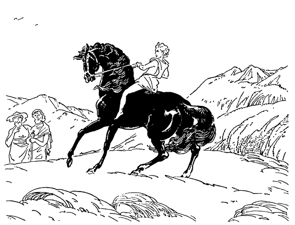 Братья из Аргоса тем временем подошли к большой глубокой реке. Услышав погоню, они бросились в реку и переплыли ее. И, едва успев выйти на другой берег, они увидели всадников, которые гнались за ними. Всадники скакали, не щадя коней. Сейчас они будут у реки, переплывут ее, и бедным пастухам уже не спастись!