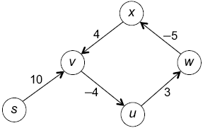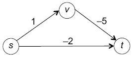 Этот граф имеет отрицательный цикл — ориентированный цикл с отрицательной суммой длин ребер. В нем есть s-