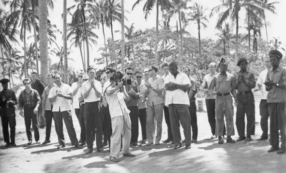 Занзибарские командиры и советские военспецы на плацу лагеря Чуквани. Автор — справа от фоторепортера (светлые брюки, рубашка навыпуск).