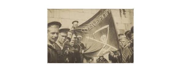 Все стены были увешены пропагандистскими большевистскими плакатами и огромными, намалеванными белой краской по кумачу, с чудовищными грамматическими ошибками, лозунгами: «экспроприация экспроприаторов», «Мир — народам», «Земля — крестьянам» и «Фабрики — рабочим».