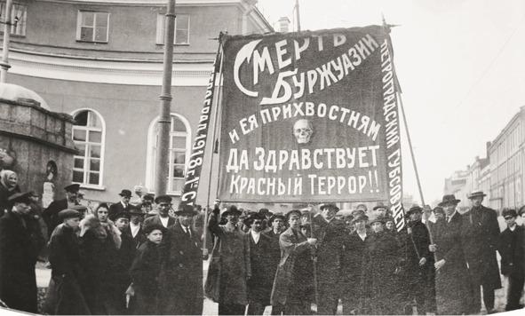По коридорам блуждали с хмурым видом комиссары и чекисты, одетые в кожанки с красными бантами на карманах и красными повязками на рукавах, хрустя новыми сапогами, снятыми с расстрелянных «буржуев». Из подвалов, перекрытых толстыми решётками и превращенных в застенки, доносились крики и вой истязаемых «буржуев» и «контриков». Иногда глухо хлопали короткие выстрелы из револьверов системы Нагана или пистолетов «Маузер» и на какое-то короткое время всё прекращалось, чтобы вскоре возобновиться с новой силой. Во дворе, возле забрызганных кровью стен, с многочисленными выбоинами от выстрелов, валялись трупы казнённых врагов трудового народа. Слово «расстрелять» в устах революционеров получило новые синонимы: «пустить в распыл», «списать», «списать в расход», «вывести в расход», «пустить на распыл» и «поставить к стенке».