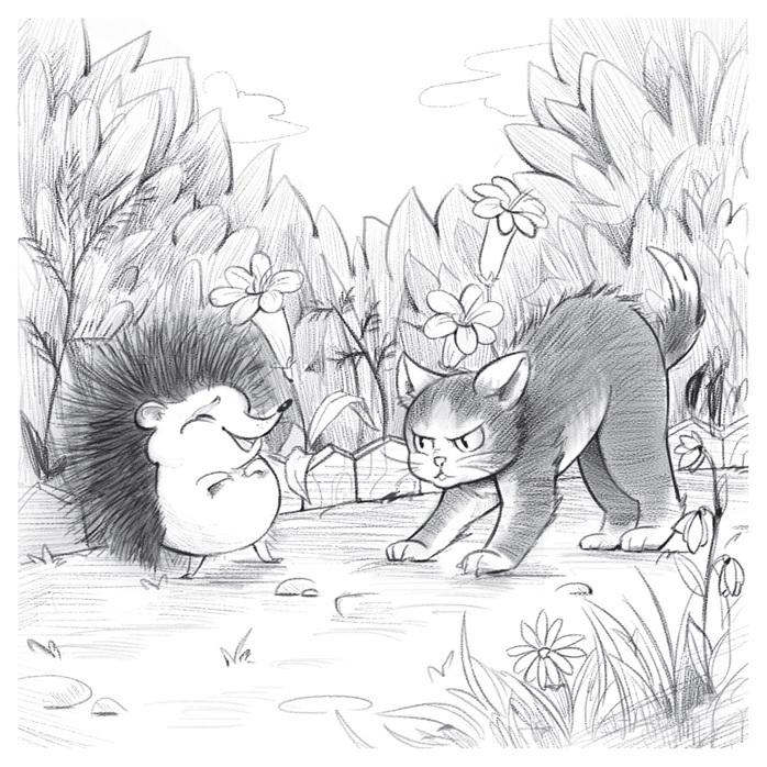 – Что это с тобой, котейка? – спросил ёжик. – Хочешь на меня напасть? Так вроде ты не похож на дикого кота.