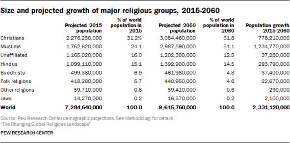 Прирост христиан, которые составляют треть населения Земли, идёт в два с половиной раза медленнее, чем прирост всего остального (не христианского) населения».