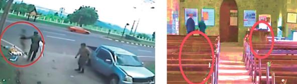 Далее в Интернете стали выкладывать видео с камер наблюдения, не только выхода души из тела, но фиксирования призраков. Как например, фото 2 с камер видеонаблюдения, показывающая призрака, выходящего из проезжей части и прямо в полосу встречного движения.