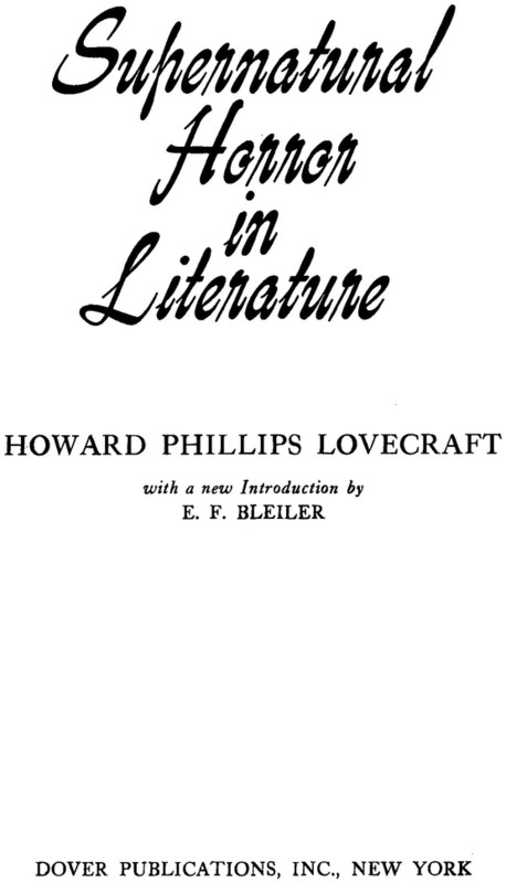 The late Howard P. Lovecraft (1890-1937) was probably the most notorious throw-away author in modern American literature, and nowhere else is this trait more obvious than in his long essay Supernatural Horror in Literature. Here the most important American supernaturalist since Poe formulated the aesthetics of the story of supernatural horror, summarized the known range of such fiction in masterly fashion, offering a reading list and a point of view for an entire generation of authors and readers—and then, for all practical purposes, threw the essay away.