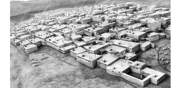 Сооружения выглядели как стены, построенные в виде круга, материалом для которых служил необработанный камень. Круги были различного диаметра — самый большой из раскопанных насчитывал 20 метров. Опорой стенам служили колонны, высота которых достигала 5 метров, и плиты, вытесанные из цельных кусков известняка. На колоннах сохранились изображения животных. Часть изображений выполнена в виде рельефов. Стены и колонны комплекса украшают не только звери. среди изображений можно увидеть и людей, и птиц, и странных животных. напоминающих динозавров. Одной из наиболее интересных находок археологи считают скульптурные изображения легендарных создателей мира — демиургов. Их внешний вид напоминает обычных людей. Основным отличием демиургов является отсутствие лиц. Учёные, ранее были уверены, что строительство культовых сооружений началось со времени перехода кочевых племён на оседлый образ жизни. Открытие храмового комплекса Гёбекли-Тепе в корне изменили это представление. Была выдвинута версия, что уже в то время существовал класс жрецов. Именно они имели привилегированное положение, позволяющее следить за ходом строительства, а храм Гёбекли-Тепе служил местом поклонения людей своим предкам. Предполагается, что культ Гёбекли-Тепе играл ключевую роль в возникновении земледелия. Происхождение в данном регионе земледелия и скотоводства ученые относят к эпохе после 9 тыс. лет до н. э. По приблизительным оценкам, для изготовления и доставки колонн массой 10—20 т от каменоломни до постройки, которые разделяют до 500 м, при отсутствии тягловых животных требовались усилия до 500 человек. На самом деле некоторые колонны весят до 50 т, поэтому людей нужно было ещё больше. Такие работы требовали планомерных усилий и наличия социальной иерархии, в которой многие люди были подчинены одному религиозному или военному лидеру, и религиозный лидер должен был затем контролировать проведение ритуалов. В таком случае, само существование храмового комплекса в столь далёкую историческую эпоху свидетельствует о социальном расслоении на очень раннем этапе развития неолитической культуры. Новые сообщения об открытиях, сделанных в ходе раскопок этого комплекса, позволяют достоверно утверждать, что именно там зафиксирован факт первого цивилизационного земледелия. В начале 8 000 тысячелетия до н.э. храмовый комплекс Гёбекли-Тепе очевидно утратил прежнее значение и был намеренно засыпан землей. В этой связи представляют интерес раскопки Чатал-Хююк — большом поселении эпохи керамического неолита в провинции Конья (Терция, Анатолия). Археологические раскопки, начатые в 1960 году показали, что самые ранние найденные культурные слои относятся к 7400 г. до н. э. Холм Чатал-Хююк создавался жителями на протяжении веков путём постройки новых домов поверх старых, что в настоящее время составляет 17 м археологического слоя. Дома стояли настолько близко, что между ними не было проходов. Также у домов не было дверных проёмов, вход в большинстве случаев был устроен с крыши, куда были проложены лестницы как внутри, так и снаружи домов, поэтому «городское движение», по-видимому, проходило по крышам зданий.