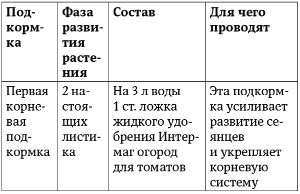 Для нормального развития сеянцы нуждаются в подкормке (табл. 1).