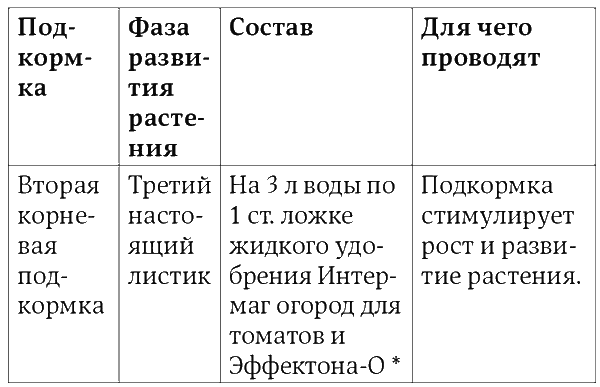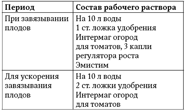 Томаты хорошо отзываются на внекорневые подкормки. За вегетационный период их должно быть несколько (табл. 4).