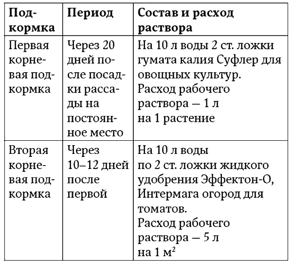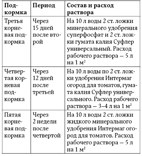В период вегетации необходимо сделать 4–5 корневых подкормок (табл. 3).