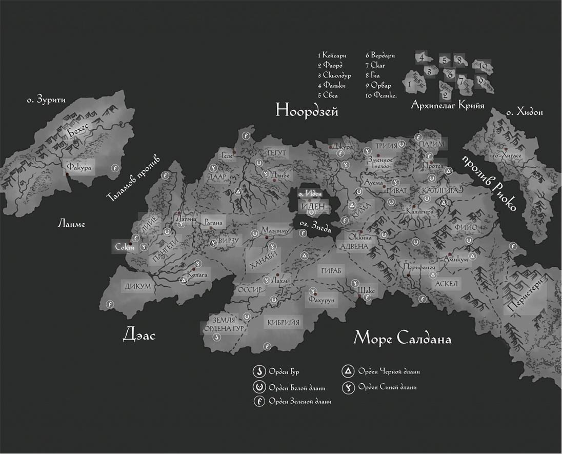На острова власть Мелина не распространялась. Зýрити на западе, Крийский архипелаг на севере и Хидо́н на востоке не признавали ни законов Мелина, ни деления на княжества.
