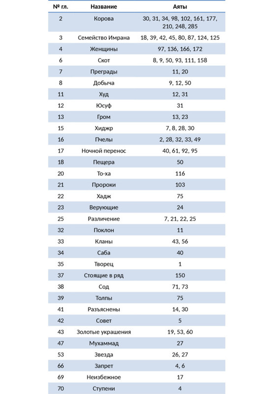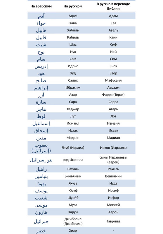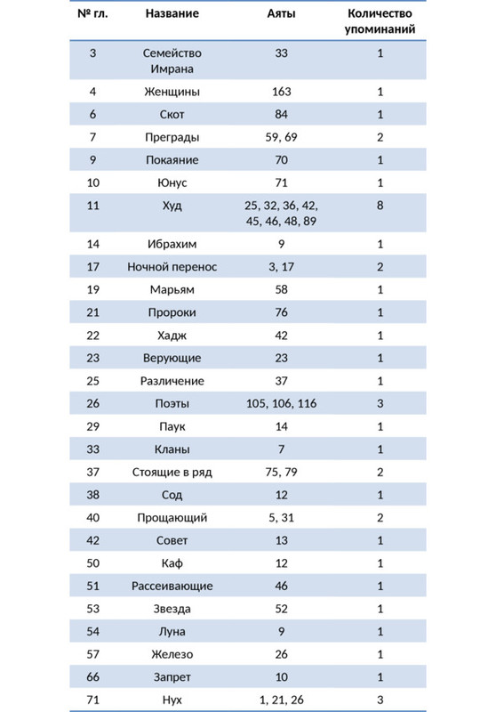 5. Ссылки на упоминания того или иного пророка в Коране даются в табличной форме.