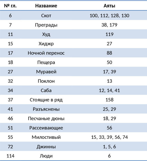 – «Семейство Имрана», «Трапеза», «Марьям» и «Я-син» (лишь имя).