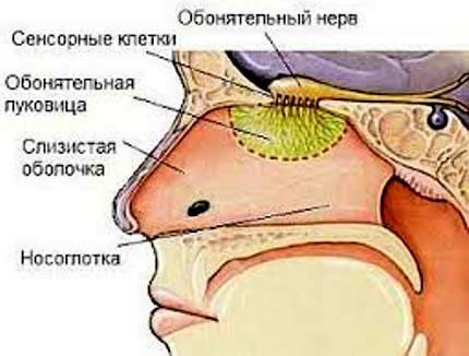 рис 1. Схема расположения обонятельной луковицы