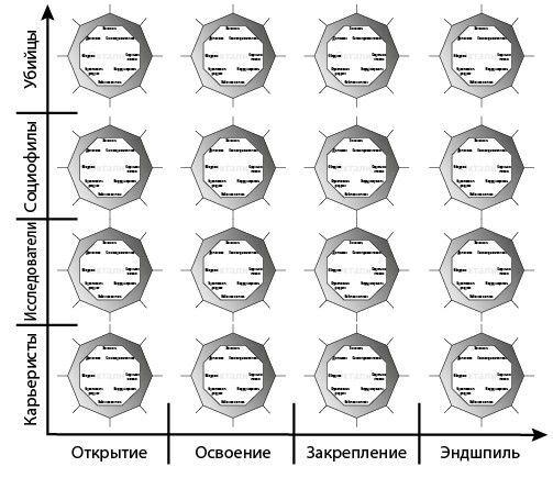 Рис. 13. Дальнейшее продвижение по уровням: третий уровень октализа с использованием типов игроков по Бартлу.