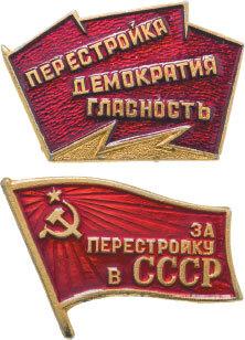 В СССР выпускались значки на тему перестройки, которые сейчас есть в коллекциях многих фалеристов
