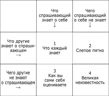 2 =Слепое пятно. То, что видят в вас другие, либо неизвестное вам вовсе, либо существующее лишь на уровне смутных догадок.