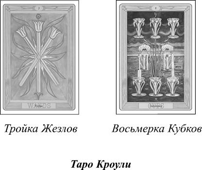 С этого момента рисунки помогали толкованию всех 78 карт, что объясняет огромную популярность колоды Райдера–Уэйта. Тот, кто серьезно занимается картами, не может не заметить, насколько глубока их символика. Тем не менее те, кто ищет в Таро нечто мистическое и полное таинственности, нередко оказываются разочарованными кажущейся простотой рисунков. Тогда они, рано или поздно, обращаются к Таро Алистера Кроули, рисунки которого, наряду со своим магическим очарованием, обладают невероятным богатством символики. Правда, сначала необходимо изучить символику, чтобы глубже понять значения карт. В наше время мало кто доверяет толкованию рисунков и символов, и в результате не только новички, но иногда даже опытные тарологи теряются в смысловом многообразии Таро Кроули. Поскольку в колоде Кроули всем картам Младших Арканов присвоены названия, то невольно появляется желание толковать не столько их символику, сколько само название. Однако при этом упускается нечто важное, теряется скрытый, глубинный смысл.
