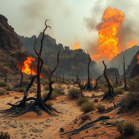 Один за другим слышны там взрывы, Лес был окутан пламенем таким, что поднималась до небес.