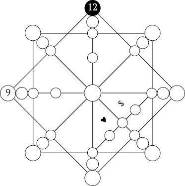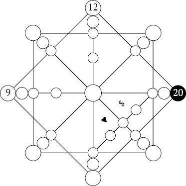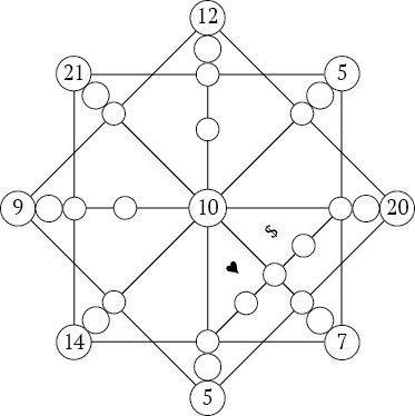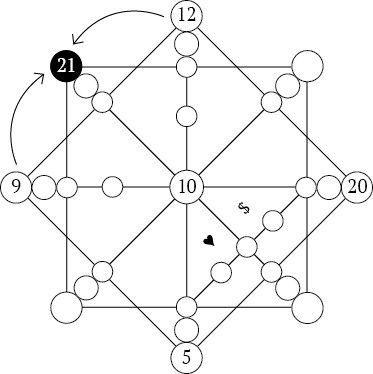 Для вычисления точки 19 суммируем левый угол и центр Матрицы (рис. 21, а и б): 9 + 10 = 19.