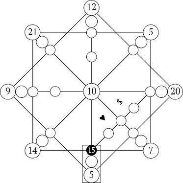 Для того чтобы найти 15 точку (рис. 13, а), складываем нижний угол с центром Матрицы: 5 + 10 = 15.