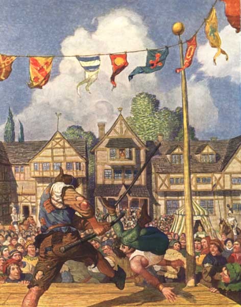 Robin Wrestles Will Stuteley at Gamewell 53"Catch him by the middle," he shouted. "Now you have him, lording, fairly. Throw him prettily!" And sure enough Stuteley came down