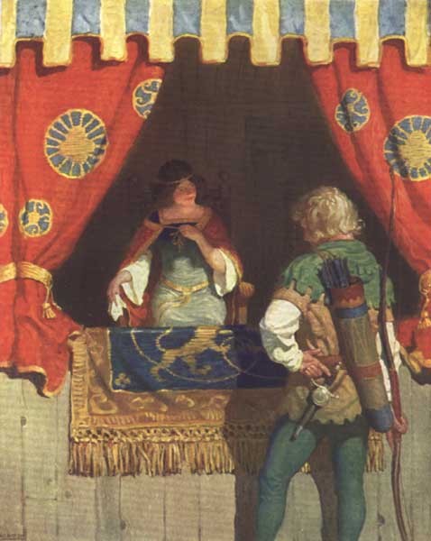 Robin Meets Maid Marian 116But Robin, venturing all, drew nigh. He came to the edge of her box, and began to speak