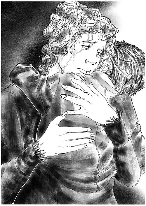 Вдруг маленькое любящее сердце подсказало мальчику обвить ручонками шею матери и покрыть лицо ее поцелуями. Она прижала сына к себе и горько заплакала.